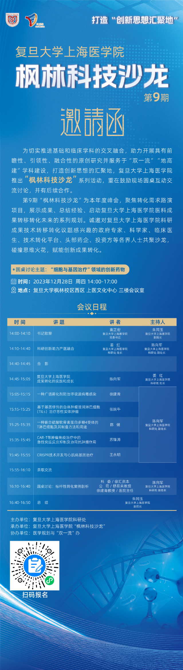 复旦大学上海医学院第9期“枫林科技沙龙”诚邀各界人士参与